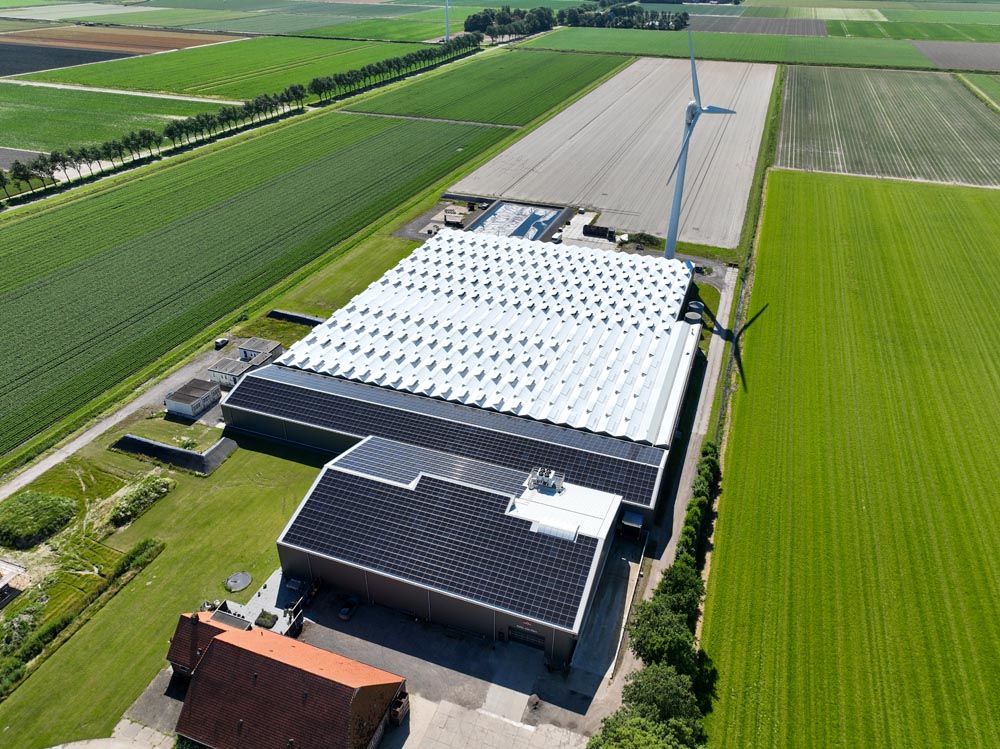 Bij bloembollenbedrijf Van Oers hebben we alle beschikbare dakvlakken benut met zonnepanelen. Deze installatie, uitgevoerd in opdracht van Agro Focus, maakt gebruik van Jinko glas/glas panelen in combinatie met SolarEdge technologie. Dankzij de samenwerking met Liander hebben we een DER-regeling toegepast om het maximaal te leveren vermogen aan het net te optimaliseren, in combinatie met de bestaande windmolen. Dit project werd met vlag en wimpel goedgekeurd en ontving meteen een Scope 12 keuring zonder opmerkingen, wat getuigt van de hoge kwaliteit en betrouwbaarheid van de installatie.
